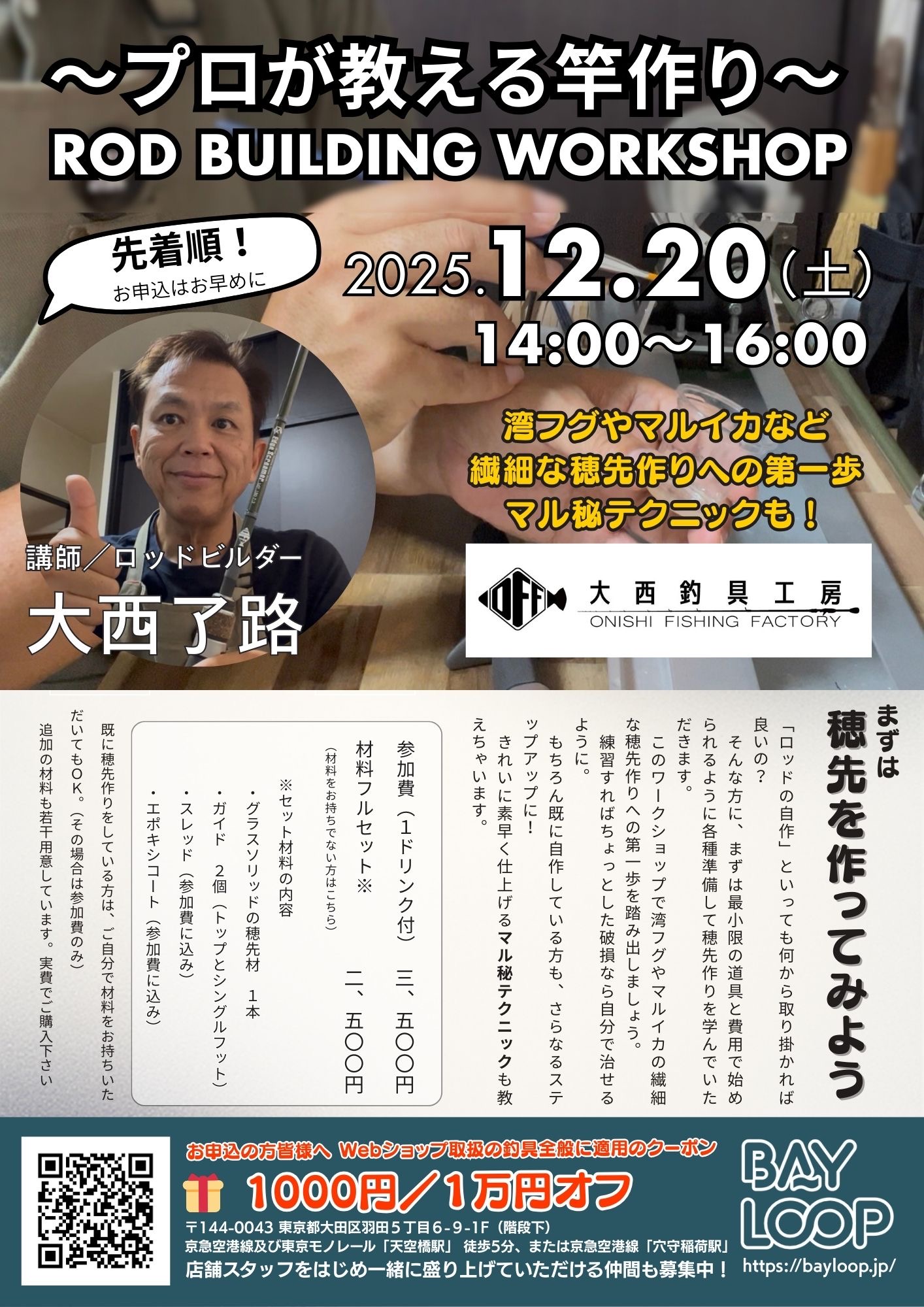 お知らせ2025年12月8日ロッドビルドワークショップ開催のお知らせ